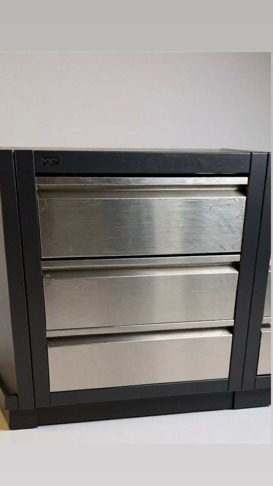 יחידה עם שלוש מגירות עמוקות ונוחות לשימוש יומיומי. עשויה מאלומיניום מלא בעובי 18 מ"מ, חזקה וקלה לניקוי. גוון שחור או אפור לבחירה.